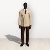 Enhance your level of corporate sophistication with this expertly crafted two-piece suit boasting an elegant contrast of fabrics. The jacket, crafted from light sand-beige coloured fabric, is a double-breasted style featuring peak lapels, Six matching buttons, and a fitted design highlighting your shoulders. The lightly fitted trousers in a rich earth-brown color are slim fitting to create a more contemporary style that resembles a broken suit look and would be ideal for use in a high level business meeting at the Delta state secretariat or at an upscale wedding within the Oil City area.