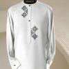 Monochromatic Sophistication: The high-contrast black embroidery on pristine ivory creates a bold yet elegant statement.