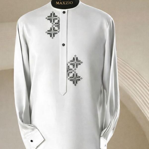 Discover ultimate minimalist style in this ivory senator top from Maxzio. Created with the Nigerian gentleman in mind, this beautifully fitted top will complement your wardrobe perfectly. Made with top-quality, high-density, polished cotton, you will find this soft yet breathable piece great for the hot weather and nice to wear while having some much-deserved fun. The chest features a distinguishing asymmetrical black cross-stitch embroidered pattern with an added touch of sophistication and style from the hidden button placket to the contrasting black buttons' finish.